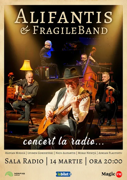 Artist emblematic al muzicii românești, Nicu Alifantis propune, alături de FragileBand, un concert care pune în valoare forța expresivă a pieselor sale, într-o formulă sonoră elegantă și profundă. „Concert la Radio” este o invitație la introspecție și sensibilitate, unde fiecare melodie devine un dialog sincer cu publicul, iar versurile capătă o intensitate aparte în spațiul acustic al Sălii Radio.