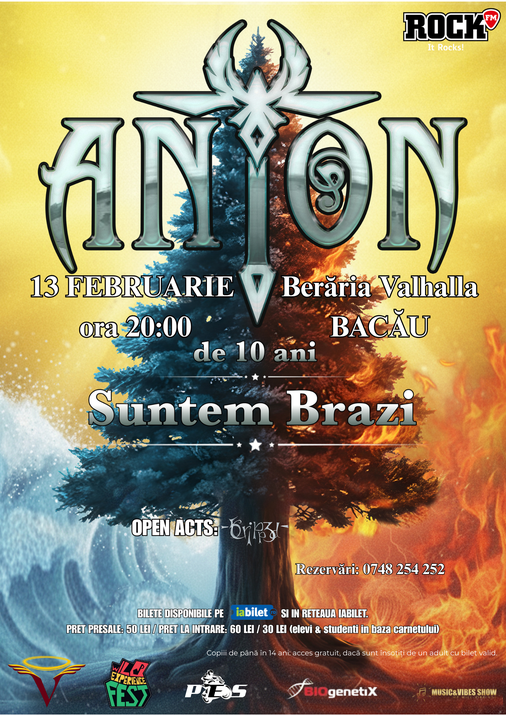Cu două materiale discografice solide lansate, sute de concerte, participări la cele mai importante festivaluri de profil, difuzări constante la radiourile de profil și multiple colaborări cu unii dintre cei mai apreciați artiști din scena rock-ului românesc, ANTON celebrează un deceniu în care au transpus în cântece gânduri, trăiri și au cântat despre frumos, despre urât, despre decepții, dar, însumat, pentru speranță.
