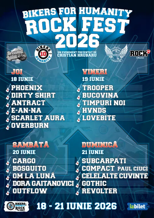 BIKERS FOR HUMANITY ROCK FEST EDIȚIA V, 18–21 iunie 2026, Brezoi, Vâlcea.