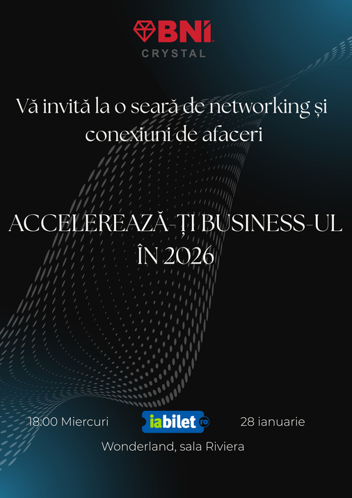 2026 va fi un an al deciziilor clare, al parteneriatelor potrivite și al business-urilor care aleg să crească. Așadar, BNI Crystal organizează un eveniment premium dedicat antreprenorilor și managerilor care vor să intre în noul an cu direcție, claritate și oameni relevanți alături.