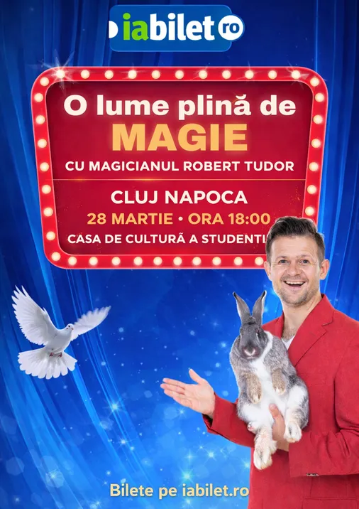 Pregătește-te pentru un spectacol plin de surprize, râsete și momente de neuitat! Robert Tudor, câștigător al emisiunii Power Couple (Antena 1) și prezent săptămânal la Neatza cu Răzvan și Dani, vine la Cluj-Napoca cu un show de magie dedicat întregii familii.