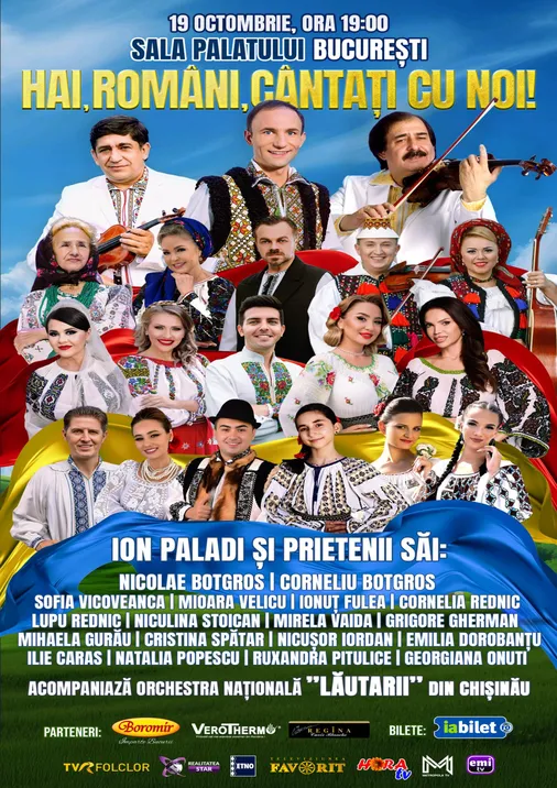 Cel mai îndrăgit interpret de muzică populară din Basarabia, cunoscut pentru șlagărele sale „Dorul Basarabiei”, „Bine-i șade mesei mele”, „Foaie verde și-un Chiperi”, revine pe scena Sălii Palatului din București cu un concert extraordinar dedicat tuturor iubitorilor de muzică populară - „Hai, români, cântați cu noi!” Ion Paladi, alături de invitații săi speciali și Orchestra „Lăutarii”, dirijată de Maestrul Nicolae Botgros așteaptă toți fanii în data de 19 octombrie 2025, ora 19:00, la Sala Palatului din București.