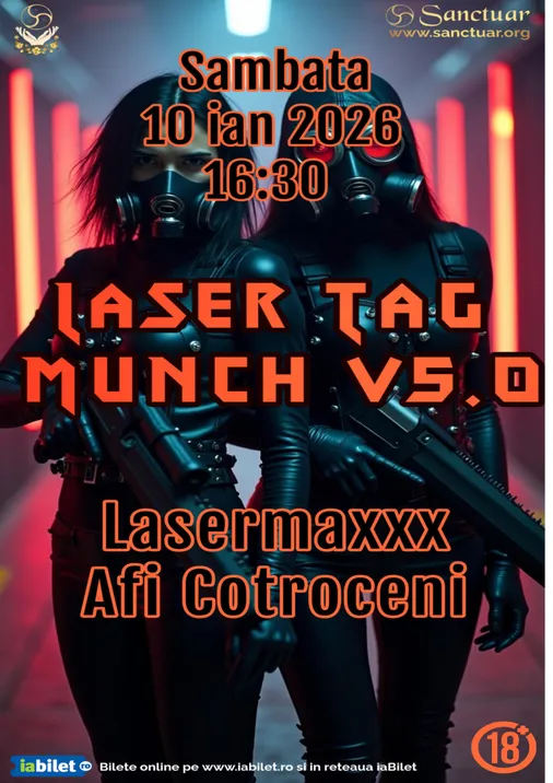 Asociația Sanctuar te invită la un munch cu țintă precisă: socializare, mișcare și un strop de adrenalină. Începem la Lasermaxxx AFI Cotroceni, de la ora 16:30, unde ne vom antrena reflexele și spiritul de echipă în două jocuri intense cu o pauză strategică între ele.