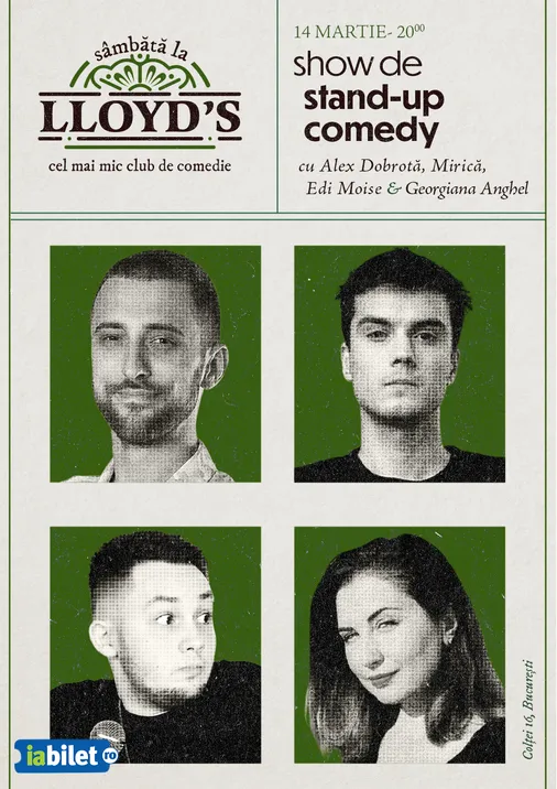 Bilete Stand-up comedy cu Alex Dobrotă, Mirică, Edi Moise și Georgiana Anghel - 14 mar, ora 20:00 - Lloyd's Comedy Club