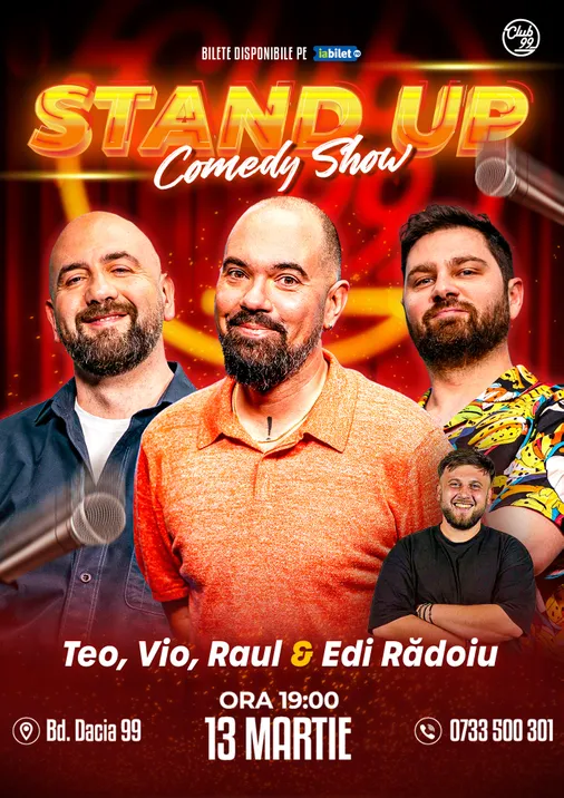 Vă așteptăm la o seară de stand-up comedy alături de Teo, Vio, Raul Gheba - Edi Rădoiu