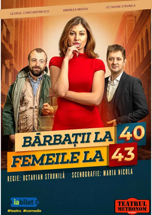 Să renunți la facultate pentru cariera soțului și apoi să constați că te înșală, să te prindă criza de la 40 cu un milion de euro în cont sau să fii părăsit pentru că ești un om prea bun la suflet sunt problemele cu care se confruntă personajele noastre, surprinse în trei tablouri: la 29, la 40 și apoi la 43 de ani. În distribuție: Octavian Strunilă, Andreea Mateiu și George Constantinescu. Scris și regizat de Octavian Strunilă.