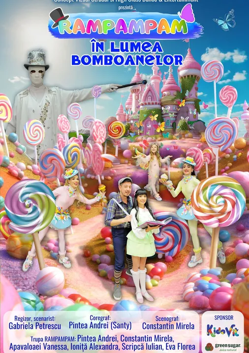 În goana după fluturi, un băiețel și o fetiță, pierd drumul către casă și ajung în minunata lume a bomboanelor. O lume dulce, chiar mult prea dulce! Trupa RAMPAMPAM vă poartă prin Univers. Cu ajutorul Magicianului Timpului și a unei Enciclopedii fermecate ei vă deschid porțile universului. Un spectacol interactiv pentru copiii de toate vârste, distractiv și educativ în același timp. Cântece, dansuri, jocuri, râsete și bucurie. Haideți să explorăm împreună lumea basmelor. Trebuie doar să spuneți formula magică: RAMPAMPAM!!!!