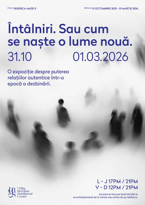 Curatoriată de Andreea Apostu și Edmond Niculușcă, „Întâlniri. Sau cum se naște o lume nouă" continuă tradiția expozițiilor de amploare organizate anual de La Mița Biciclista - Stabiliment Creativ, după succesul înregistrat de ”Țara din care venim. Primii 35 de ani” (2024-2025) și ”Monica Lovinescu. Vocea care ni s-a dat” (2023-2024). Fiecare dintre acestea a adus peste 30.000 de vizitatori în casa istorică de pe strada Biserica Amzei.