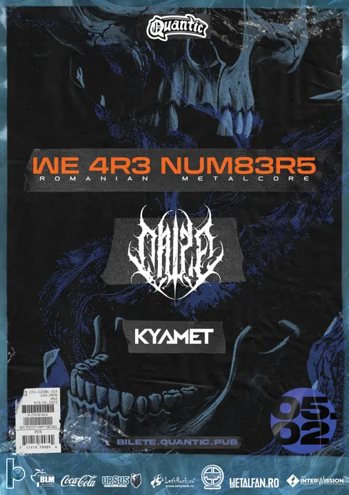 Formația de metal Kyamet din București îmbină un sound modern, puternic și intens, fără compromisuri, păstrând totodată legătura cu influențele lor. Energia brută, precizia și pasiunea definesc un show construit pe haos controlat și o declarație care vrea să răsune dincolo de timp: memento mori, vive in aeternum. Kyamet vine pregătită să încălzească scena Quantic așa cum se cuvine.